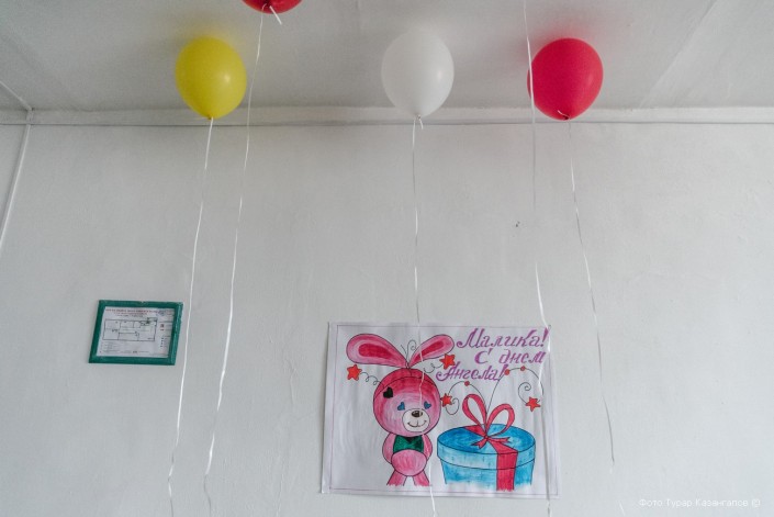 Среди осужденных женщин принято поздравлять друг друга с днем рождения. Шары и плакат до сих пор напоминают об именинах Малики Мухитовой. Девушку осудили по громкому делу о ДТП, в котором погиб внук писателя Олжаса Сулейменова. Суд назначил ей два года лишения свободы в колонии-поселении.