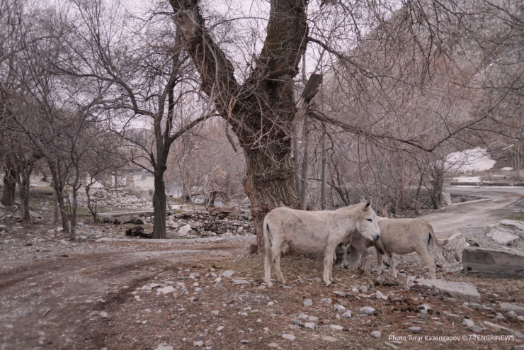 Остаток пути парень проделывает в нашей компании. Заезжаем в Байжансай, Нурсултан идет к себе домой, а мы начинаем исследовать поселок. Таким мы увидели Байжансай в марте 2021 года.