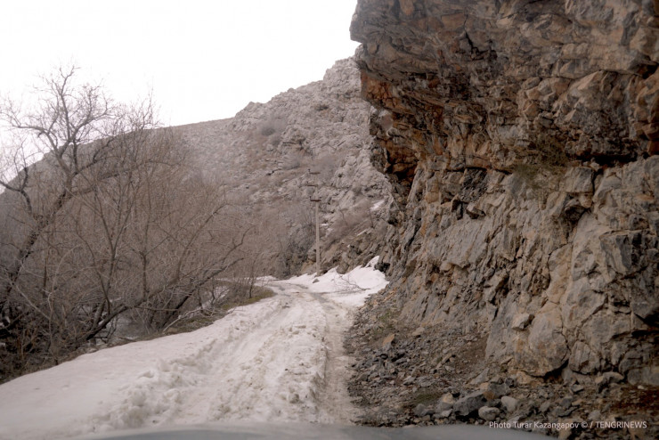 Мы едем медленно по горной дороге, состоящей из камней, узеньких мостиков, луж и сугробов. Автомобиль трясет, нас бросает из стороны в сторону.