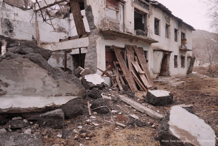 "Раньше здесь много людей было. Вот здесь контора рудника была, там школа, там клуб, там магазин, были столовая, фабрика, шахта, парк, садик, хорошо было. А потом работы не стало, все уехали в 91-92-м годах", - рассказывает Нурсауле.