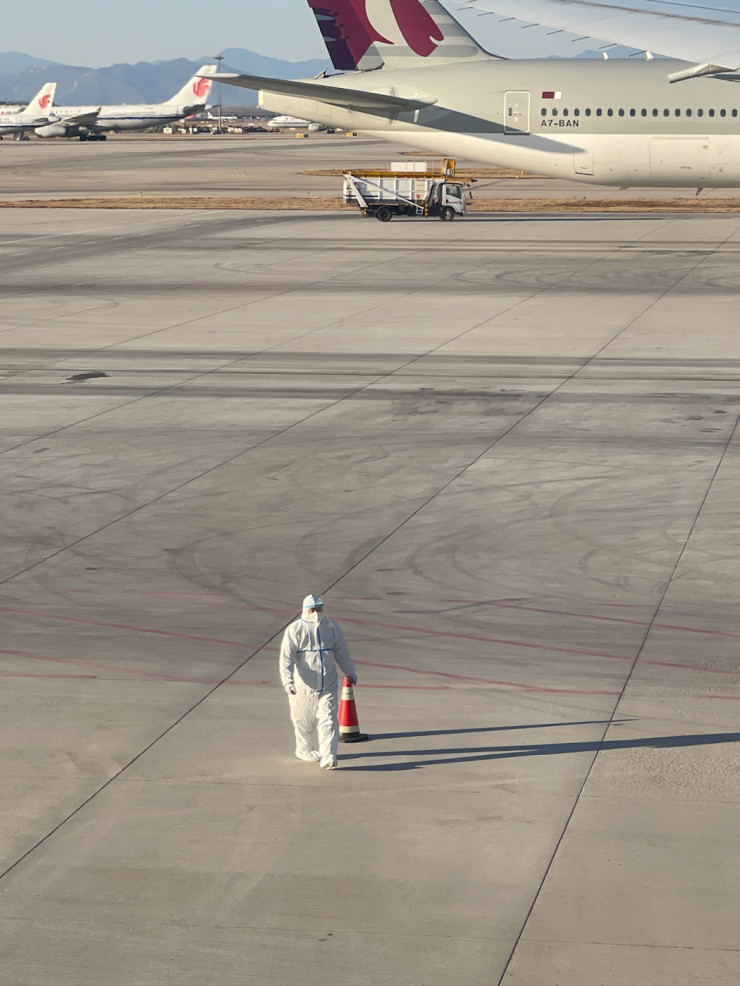 Уже по прилете в Пекин я понял, что здесь будет все строго. Навстречу самолету шел человек в полной экипировке.