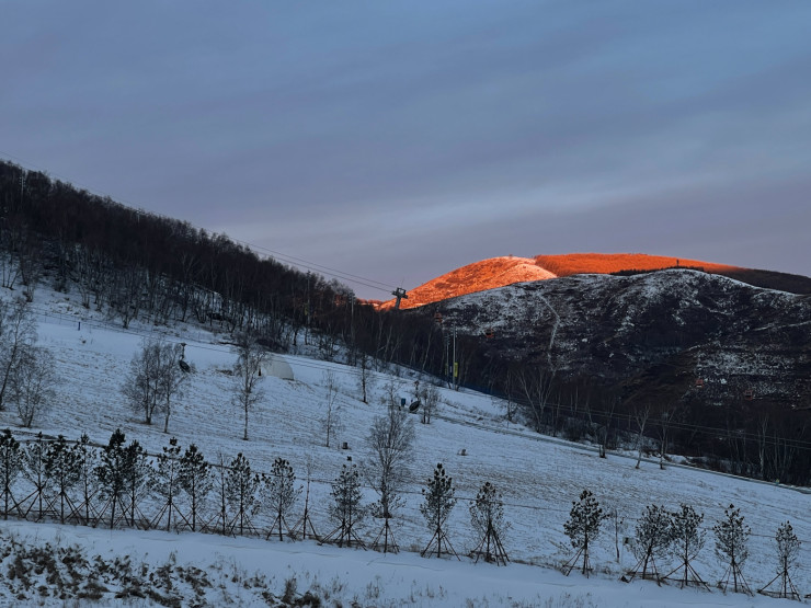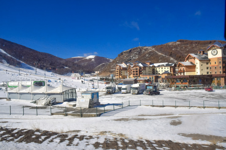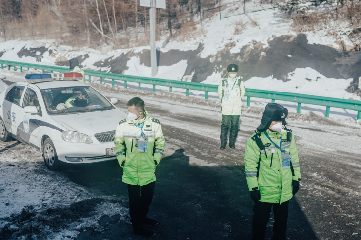 Мы находимся на горнолыжной базе недалеко от провинции Чжанцзякоу в двух часах езды от Пекина. Здесь все огорожено, полиция перекрывает дороги, запрещен въезд машинам и проход пешеходам.