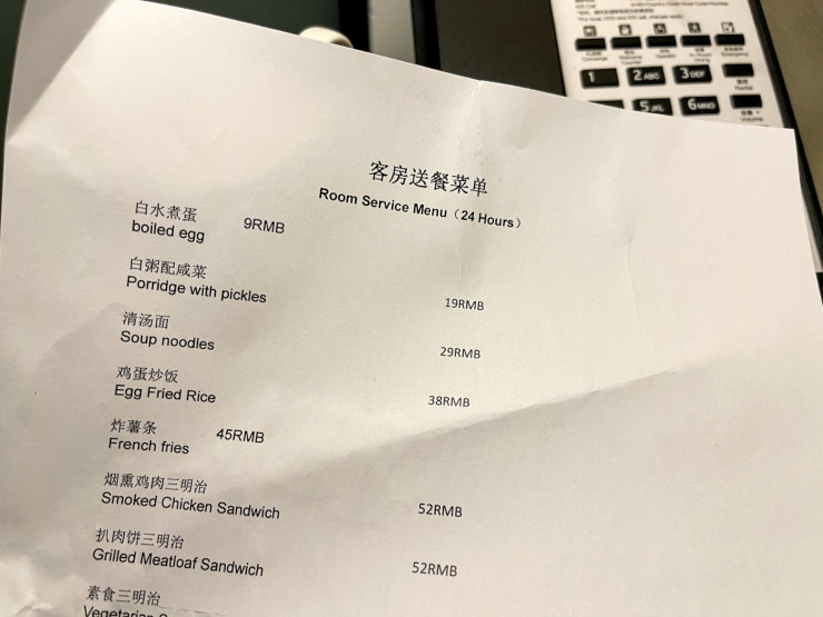 Так получилось, что на третий день тест показал у меня сомнительный результат, и меня закрыли в номере на карантин. Нельзя было спускаться на завтрак, обед и ужин, но еду можно было заказывать в номер, для этого мне принесли меню.