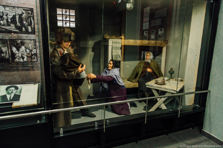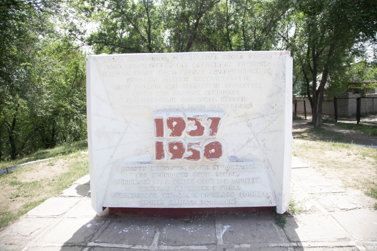 Ішке кіргеніңізде бірден көзге "1937-1950" деген жазу түседі. Сол қанды жылдардың белгісі секілді қызыл түспен жазылған.