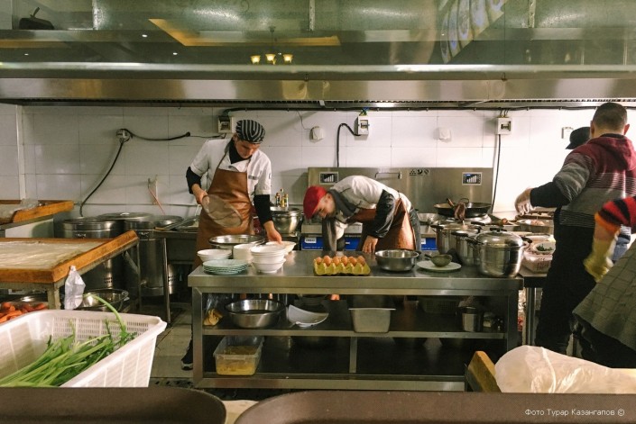 Еще только ранее утро, а в этом кафе уже вовсю готовят десятки разнообразных блюд.
