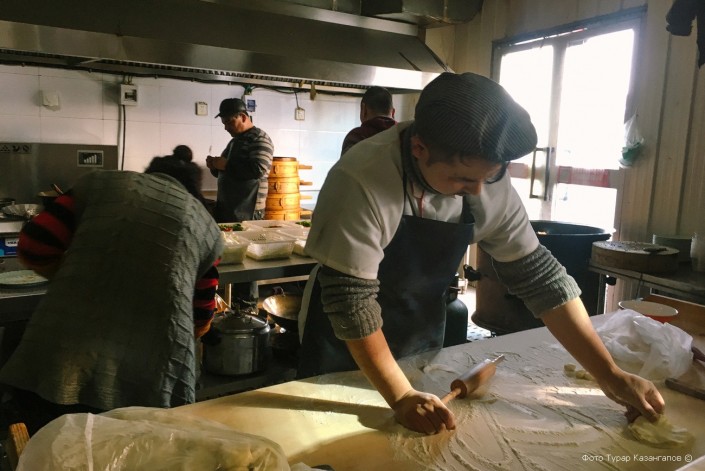 "Вот здесь мы обычно обедаем. Могу посоветовать хорошую кухню, здесь плов и лагман всегда отличного качества", - отмечает она.