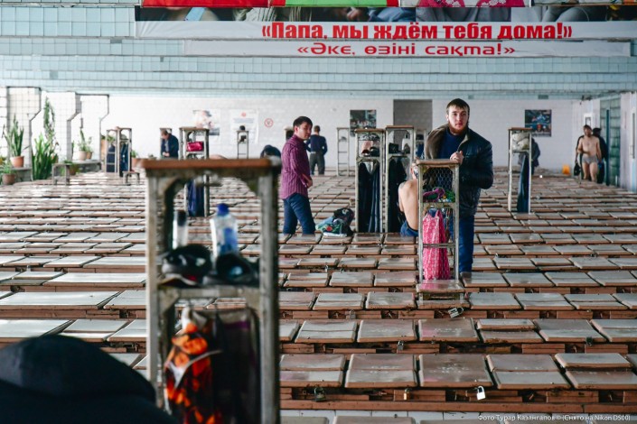 Утро возле ворот шахты "Казахстанская". Идет четвертый и, как позже выяснится, последний день забастовки. К нам навстречу выходят несколько десятков шахтеров. Мужчины окружают нас и заводят в здание. Пытаюсь в этой толпе не потерять глазами своего фотографа. Через несколько минут мы уже в актовом зале и на нас смотрят глаза двухсот человек. Мне в руки дают микрофон. Тишина. Нужно что-то говорить. Мне кажется, что мой голос дрожит. В голове только одна мысль: "Не ляпнуть бы чего-нибудь лишнего, не усугубить бы ситуацию". "Извините за глупый вопрос, но расскажите, пожалуйста, про свои тормозки...", - в итоге произношу я. По залу проносится волна смеха. Суровые, но спокойные лица мужчин расплываются в улыбках. А дальше - душевные беседы, анекдоты про тещ и горячий шахтерский чай. Корреспондент Tengrinews Айгерим Абилмажитова и фотограф Турар Казангапов о дне, проведенном в стенах бастовавшей шахты.
