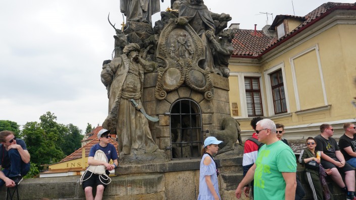 Люди то и дело потирают какую-нибудь фигурку и загадывают желание. Как объясняют гиды, на мосту есть лишь одно место, на котором можно загадать любое нематериальное желание. Это место, откуда сбросили в реку тело святого мученика Яна Непомуцкого в конце XIV века.