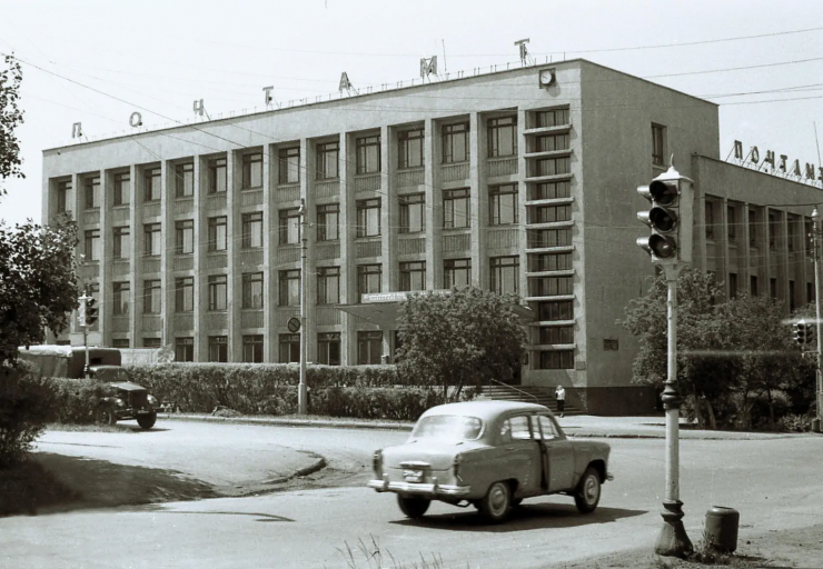 В здании, где сейчас "Казпочта", раньше был Целиноградский главпочтамт. В наши дни из-за облицовки уже и не скажешь, что оно было построено больше полувека назад. Напоминает об этом разве что табличка, приваренная к ржавой раме для баннера. На ней и указан год постройки - 1966-й.