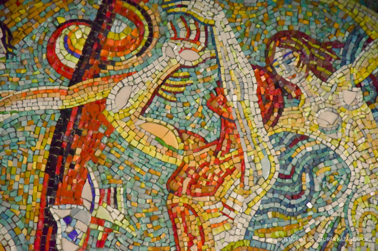 "Материал, из которого выполнена мозаика, называется смальта. Это художественное стекло, его отливают и раскалывают на небольшие фрагменты. В советское время были специальные заводы, которые занимались изготовлением этого материала. Сейчас подобных предприятий практически не осталось на территории бывшего СССР. В наши дни такие работы стоили бы очень дорого", - объясняет Темиртас.
