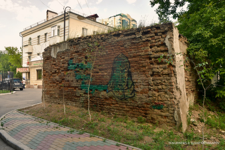 Наша историческая прогулка начинается с конца XIX века. Переносимся на пересечение проспектов Республики и Абая. Возможно, вы уже обращали внимание на старый кирпичный забор, на котором висит табличка, что он входит в список памятников истории и культуры местного значения.