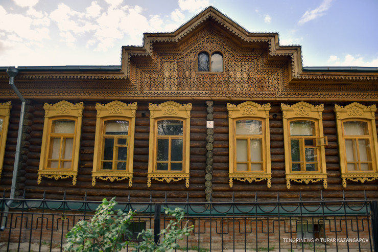 Пройдя к улице Отырар, можно заметить два одноэтажных здания, построенных из сруба дерева.