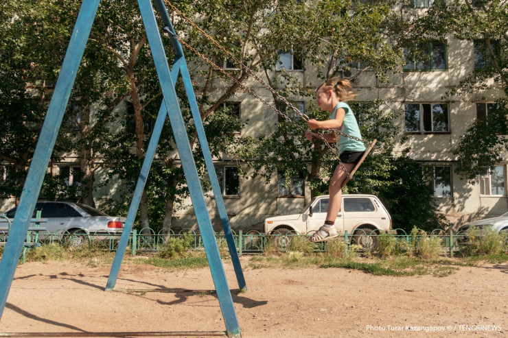 Активистка дома Марина рассказала, что недавно к ним приезжал человек из акимата и привез краску. "Будем сейчас с мамами сами красить площадку, чтобы детям было ярче", - сказала женщина.