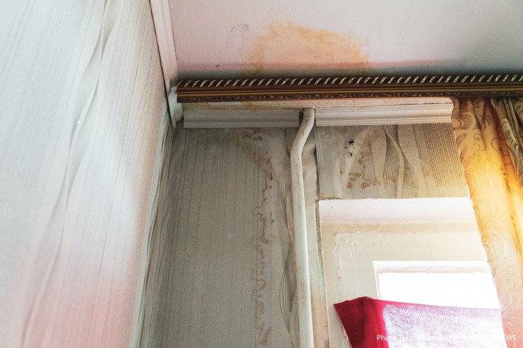 "Не могу повесить нормальную шторку, потому что грязная желтая вода бежит с крыши", - говорит она, кивая на окно.