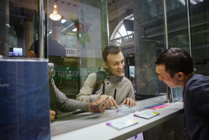 Инфоточка в холле железнодорожного вокзала "Алматы – 2"