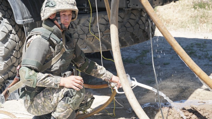 В полевых условиях во время учений военнослужащие таким же способом обеспечивают себя питьевой водой.