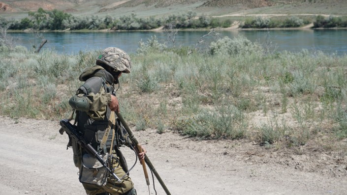 В этом живописном месте находится учебный центр "Берег" Капшагайского гарнизона. Здесь расположились подразделения инженерных войск. На фото ниже можно увидеть, как работают солдаты инженерно-саперного отделения.