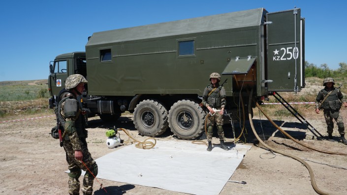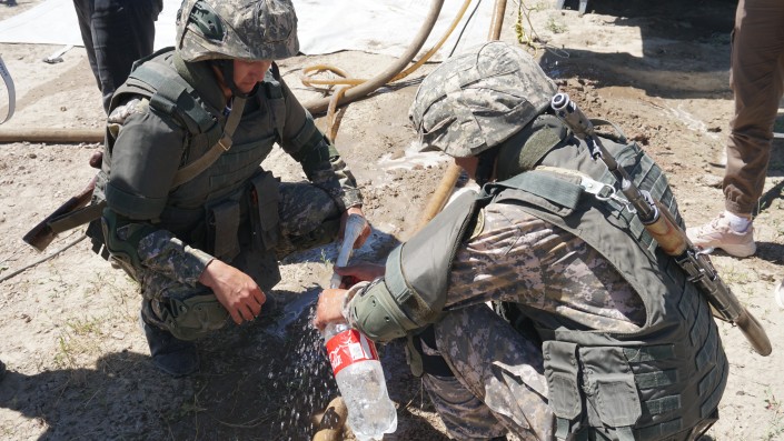 "В Ираке во время миротворческой миссии мы обеспечивали местное население питьевой водой. Наша казахстанская машина туда выезжала", - отметил командир инженерно-саперного полка Бахытбек Тажибаев.