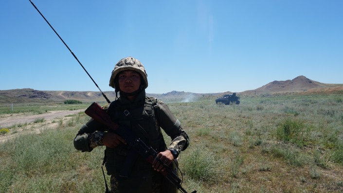 Несколько лет назад подполковник Тажибаев участвовал в миротворческой миссии. Полгода он вместе с казахстанскими военнослужащими находился на территории Ирака. Участвовал в ликвидации последствий по уничтожению взрывоопасных предметов.
