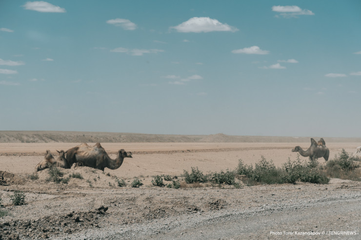 А вот и особенность западных регионов - помимо привычных многим коров и лошадей, здесь можно встретить еще и верблюдов.