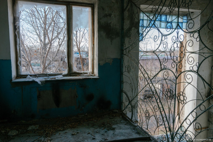 Сейчас в здании тишина. Окна разбиты.