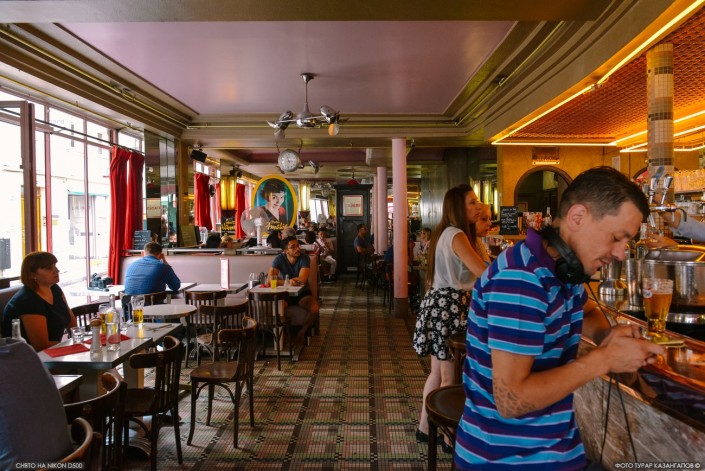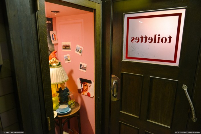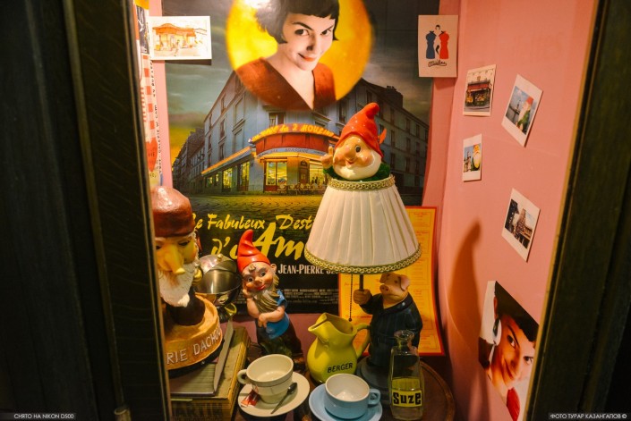 Фотография официантки Амели есть и за барной стойкой, но большее внимание ценители этого фильма советуют уделить туалетной комнате.