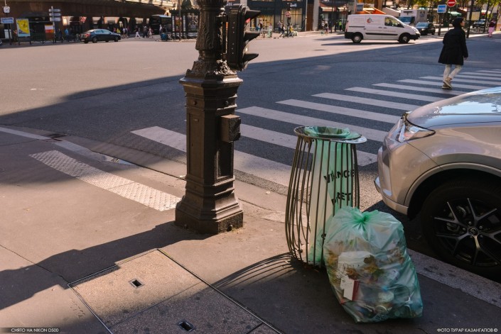 Обратите внимание на урны, в Париже они устроены таким образом, что уборщикам для того, чтобы их освободить, достаточно просто забрать заполненный пакет и закрепить на его месте новый.