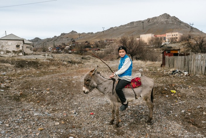 На одной из улиц Ачисая нас встречает жизнерадостный паренек на ослике. За время нашего нахождения в поселке этот местный житель еще не раз попадет в объектив нашей камеры.