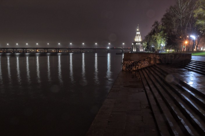 Местные жители замечают, что мы приехали в Днепр в не самое лучшее время года. Идет дождь, большая влажность. Приехали бы мы летом, уверяют они, мы бы увидели совсем другую картину. "Чего стоит только одна набережная Днепра, - говорят наши проводники, - город расположен таким образом, что на закате весь Днепр заливается неповторимым цветом. Очень красиво". Мы гуляем по этой набережной, а чуть позже станет известно, что в этот день в Украине объявлено военное положение. О том, как живет город Днепр, который расположен в 250 километрах от места, где продолжаются боевые действия, - в репортаже Рената Ташкинбаева и Турара Казангапова.
