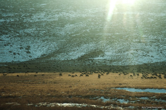 В предгорьях мирно паслись овцы и козы. Рядом с ними можно было заметить задумчивых чабанов, которые изредка с любопытством поглядывали в объектив нашей фотокамеры.