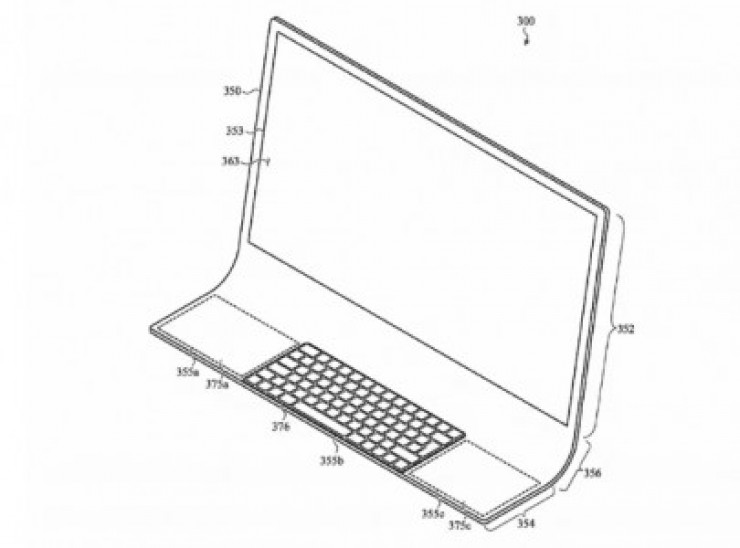 Патентная заявка описывает это так: "область ввода" и "область отображения" компьютера, подобного iMac, встроены в единую непрерывную поверхность, в то время как за дисплеем может находиться блок обработки данных компьютера, а также место для всех портов устройства".