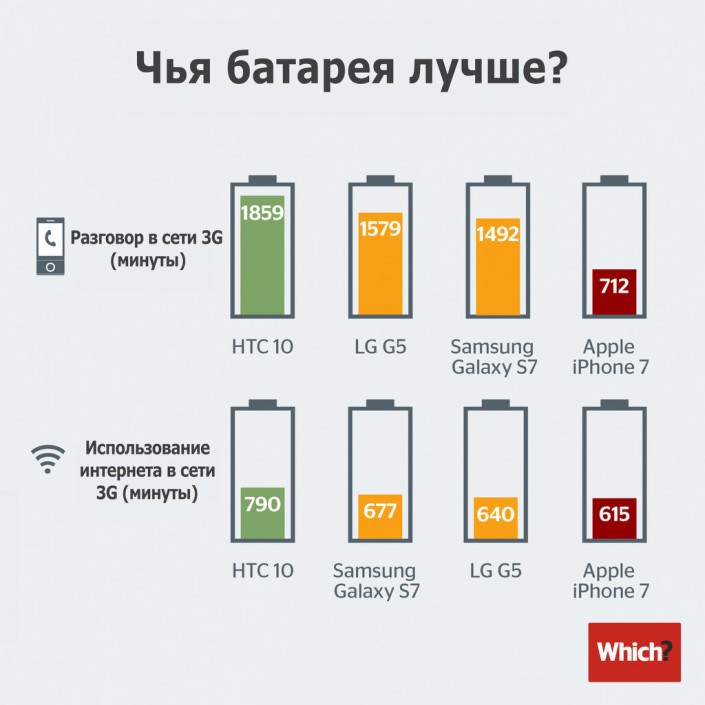 iPhone 7 показал худшие результаты в исследовании автономности флагманских смартфонов, сообщает "Вести".  Тесты провела британская организация Which?, которая занимается сравнительными исследованиями потребительской электроники. Отмечается, что в режиме разговора iPhone 7 уступает ближайшему конкуренту вдвое.