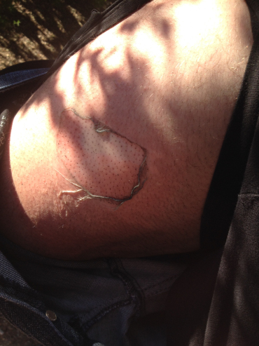 В кожаном чехле в переднем кармане джинсов американца в это время лежал iPhone 6. От удара девайс согнулся посередине, после чего у смартфона загорелся аккумулятор. Помимо синяков и ушибов мужчина заработал ожог второй степени на правой ноге. Площадь ожога составила 11,5 х 10,5 сантиметра.