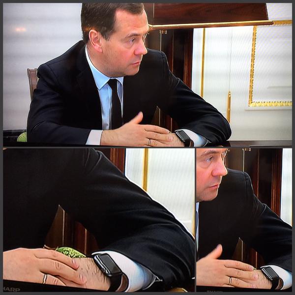 Премьер-министр России Дмитрий Медведев пришел на совещание к президенту РФ Владимиру Путину в "умных" часах Apple Watch, сообщает "Газета.Ru" со ссылкой на Twitter журналиста Дмитрия Смирнова.