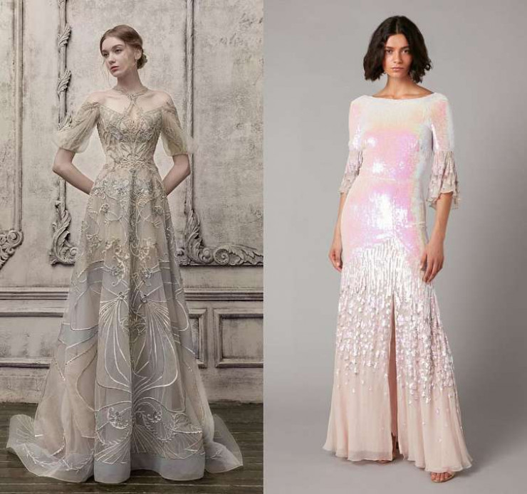 Во время локдауна многие пары вынуждены были отложить на время свадебные торжества. И теперь, когда вновь можно провести масштабную свадьбу, они хотят "компенсации". И тенденции свадебных платьев откликнулись на это волной эффектных моделей, декорированных перьями. Подобные были замечены в коллекциях Elie Saab, Naeem Khan и Rosa Clara