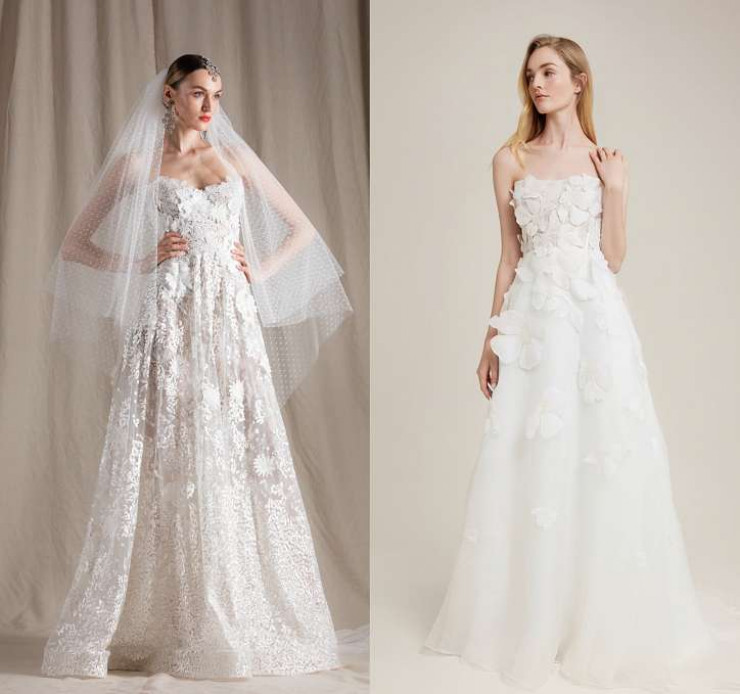 Фаворитами весны 2023 стали красивые свадебные платья с цветочными мотивами. На неделе свадебной моды было представлено множество моделей с вышивкой, объемными цветочными аппликациями и принтами. Такие новинки свадебных платьев продемонстрировали Pronovias, Gracy Accad и Naeem Khan.