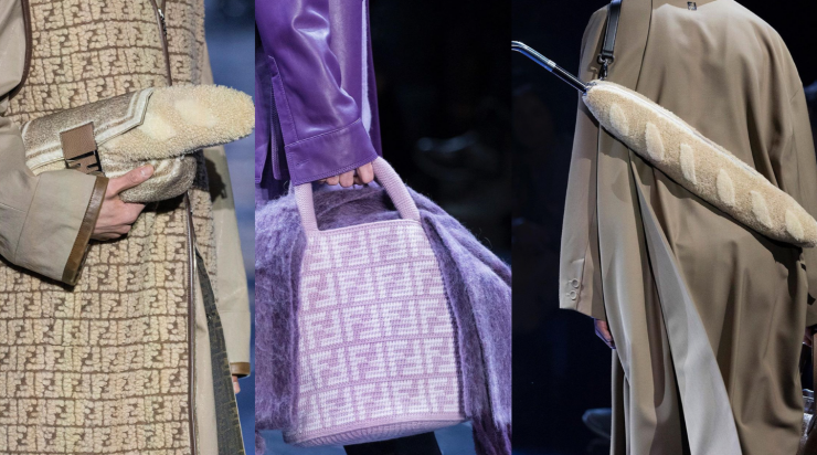 Креативный директор модного дома Сильвия Вентурини-Фенди выпустила сумки и чехлы для зонтов в форме настоящих багетов. Показ был полон сюрпризов, где, помимо меховых багетов, представили меховые сумки и чудесные "джинсовые куртки", которые на самом деле сделаны из норки и овчины.