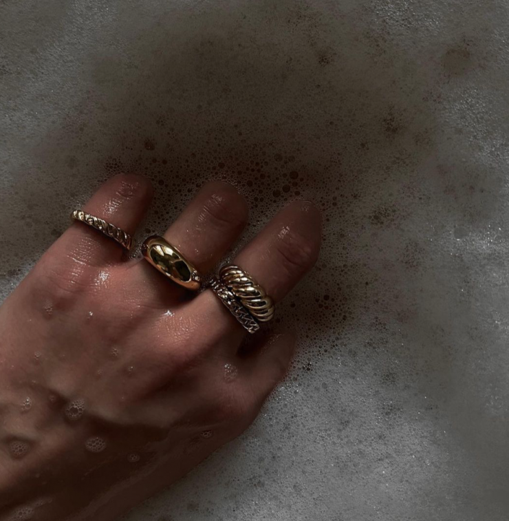 Недорогие наборы бижутерии на пальцах смотрятся очень женственно, привлекают внимание к маникюру и делают любой образ нарядным. Но эра сетов колец уходит безвозвратно. В 2023 году эти наборы стоит убрать в дальний ящик, а вместо них приобрести пару массивных колец с камнями или без них. Можно комбинировать их или носить по одному, но не надевать на вторую фалангу пальца.