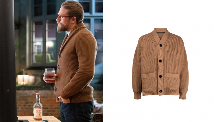 К слову, кардиган крупной вязки табачного цвета – один из самых стильных предметов гардероба в "Джентльменах". Одежда, сшитая по мотивам английской классики, есть в коллекциях самых разных брендов. Например, такой нам удалось найти в Sacai, его стоимость равна 400 000 тенге.