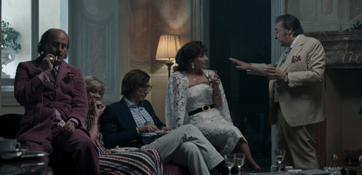 Лента Ридли Скотта посвящена смутному периоду в истории Gucci - концу 80-х и началу 90-х, когда бренд переживал убытки, большие перемены в руководстве компании и убийство Маурицио Гуччи по заказу его бывшей жены Патриции Реджани.