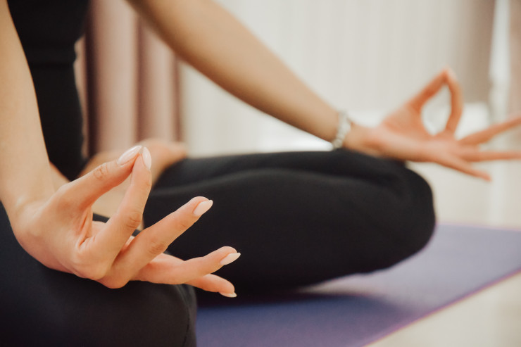 Прежде чем приступать к комплексу упражнений, тренер рекомендует начать с концентрации внимания. Для этого нужно сесть на коврик или пол в удобное положение, сложив пальцы, как на фото ниже.