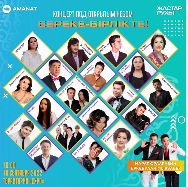 На сцене выступят известные казахстанские звезды: Мирас Жугунусов, НАZИМА, Ninety One, Айқын Төлепберген, Ернар Айдар, Дильназ Ахмадиева, Yenlik, 2RAR, De Lacure.