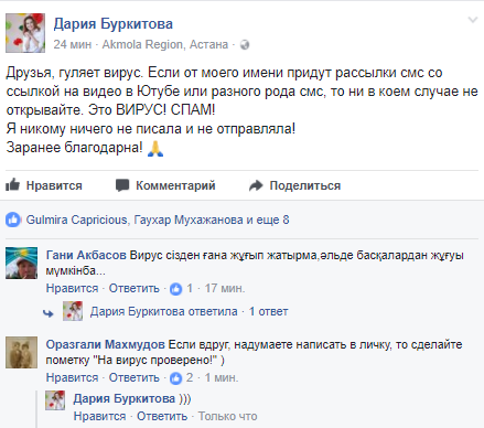 Ряд пользователей уже предупредили своих друзей, что от них идет спам и открывать сообщения, а также кликать на ссылки не нужно.