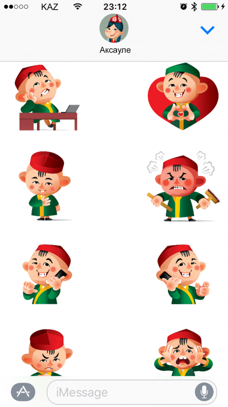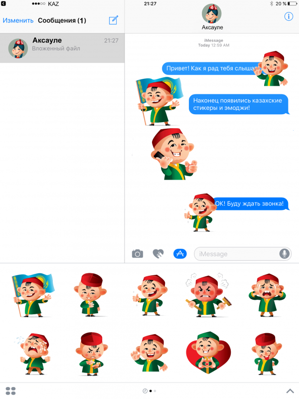 С обновлением операционной системы iOS 10 жителям Казахстана стали доступны национальные стикеры-эмодзи. Бесплатный пакет стикеров появился в разделе AppStore для iMessages (или "Сообщений") под названием "Казахские эмоджи".