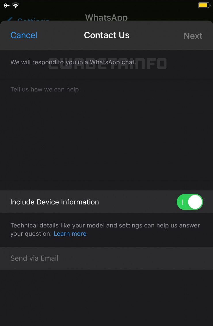 Согласно данным портала, если пользователь столкнется с ошибкой в работе приложения, он может написать об этом прямо в поддержку WhatsApp.