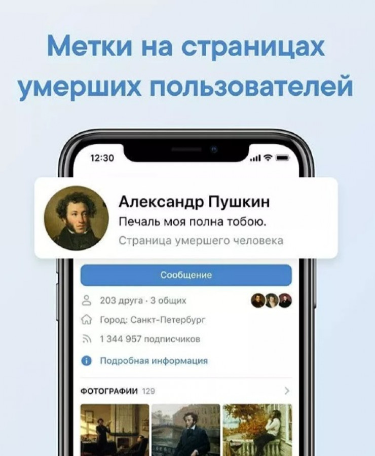 "Теперь вместо даты и времени последнего визита в ВК пользователи увидят в профиле надпись "Страница умершего человека", - рассказали в компании.