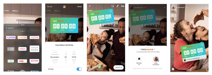 К Stories ("Историям") можно прикреплять интерактивные стикеры с обратным отсчетом. Это, по словам разработчиков, позволит друзьям вместе отсчитывать время до захватывающих моментов. Когда время закончится, приложение пришлет специальное уведомление.