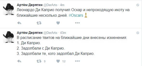 Также появился специальный аккаунт под названием "Выиграл ли "Оскар" Лео". Последняя запись, собравшая большое количество лайков и ретвитов, состоит из одного слова - "Да".