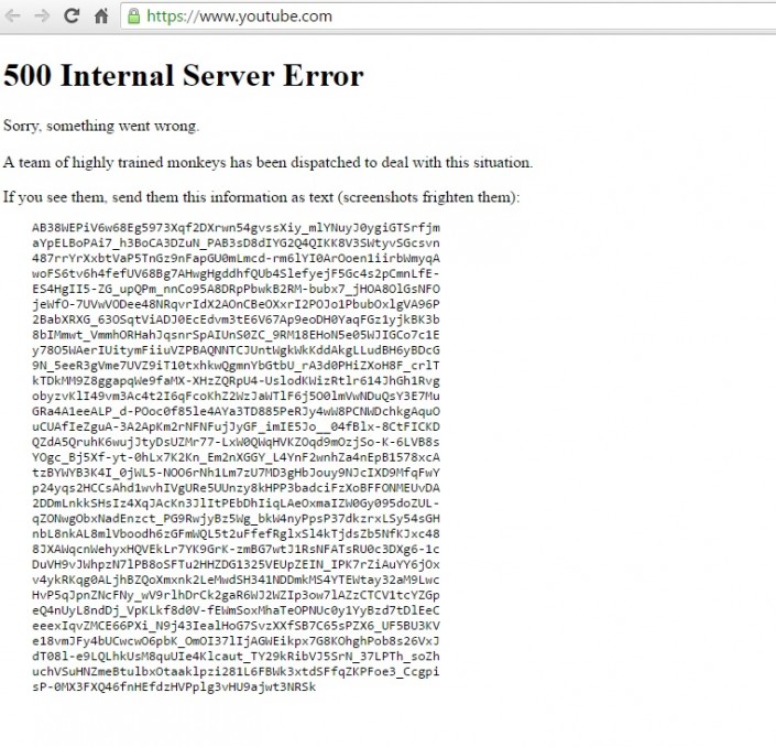 Об этом говорит код ошибки 500, который высвечивается при попытки зайти на стартовую страницу YouTube. Неполадки начались примерно в 17.25 по времени Астаны. В частности, сообщения о том, что YouTube перестал открываться, писали пользователи Twitter из разных частей света - России, Новой Зеландии, Великобритании, Ирана. Таким образом, можно сделать вывод, что проблема возникла на стороне видеохостинга.
