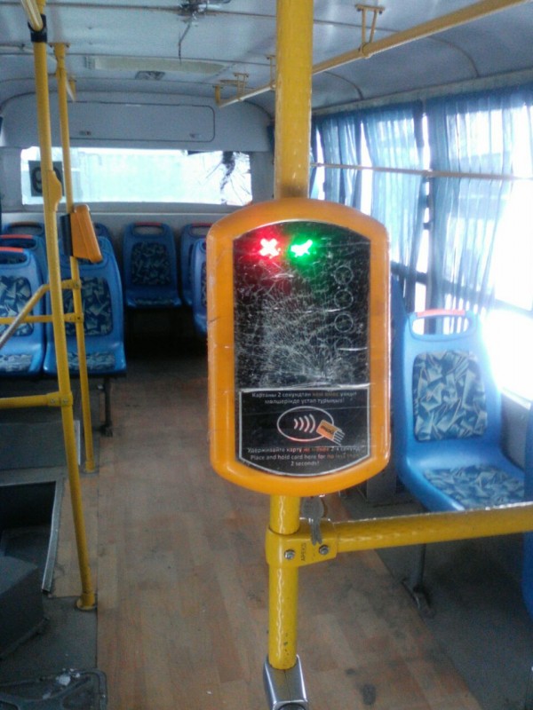 "Очень много, - сказал Садир Хамраев. - Участились случаи после введения дифтарифа, где-то с сентября 2017 года. Недавно я подписал около 12-13 писем - претензий перевозчикам по умышленной порче оборудования. У нас же три вида оборудования. Первый - мобильный терминал, который печатает билеты. Когда печатается билет, есть рулон бумаги и ролик, который это все крутит. И чтобы билет не распечатывался, они ломают ролик, а потом пассажиру показывают: "Вот, смотри, не выходит билет, холдинг виноват". Просто так этот ролик не сломается. Нужно туда залезть и оторвать оттуда. Либо гнут разъем, откуда выходит билет. Всего разбиты и не подлежат ремонту 24 штуки. Сломанные, в которых надо менять детали, - около 120".